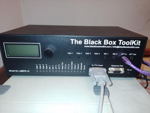 - Blackbox toolkit: Permite la medición y calibración que le ayudarán a conseguir una presentación de estímulos y una sincronización de respuestas, sincronización y marcado de eventos TTL, o triggering, con una precisión de milisegundos en sus experimentos por ordenador. https://www.blackboxtoolkit.com/ https://drive.google.com/file/d/17y0GR3R2UsHy6O1cqFrvMLely7ZsKK1R/view?u...