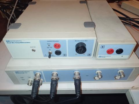 - PowerLab 4/30: Es un equipo de registro de cuatro canales que permite el estudio de: conductancia electrodérmica (GSR), actividad eléctrica encefálica (EEG), cardíaca (ECG) y ocular (EOG), ventilación pulmonar, presión arterial, y temperatura. Además dispone del software para el procesamiento de las señales LabChart. En esta dirección está una breve descripción de las posibilidades del software Labchart, aquí están los módulos para análisis de los registros, este es el módulo para análisis de la variación en la Frecuencia cardíaca (HRV). Más información se puede consultar en https://www.adinstruments.com/content/30-series-430-830-1630 y https://www.adinstruments.com/products/labchart